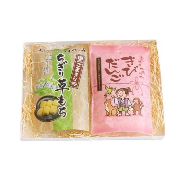 お菓子 ギフト 送料無料【選べるメッセージシール】2000円ポッキリ!黒ごまきな粉ちぎり草もち&きびだんご プチギフトセット メール便(omtmb7023g)