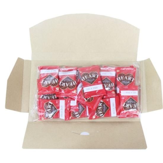 カリッと香ばしいピーナッツがぎっしり詰まったひとくちサイズのハートチョコレートなので、手軽に小腹を満たすことができます。