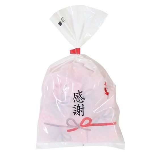 ハート型のチョコレートをありがとうの気持ちを個装にデザインしたフィルムで包んだ「ありがとうチョコ」を感謝を伝えるのに最適な袋に詰めました。