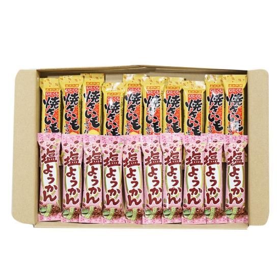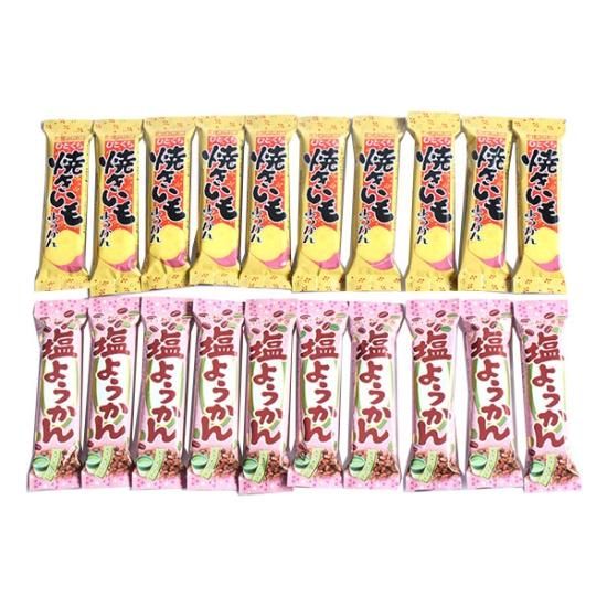 さっぱりおいしいつぶあん食感の塩ようかんと、焼いもの自然な甘みと風味をそのままに、口当たりなめらかなようかんで素朴な味わいを再現したひとくち焼きいもようかんのセットです。