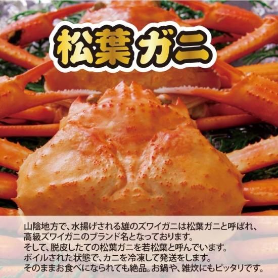山陰地方で、水揚げされる雄のズワイガニは松葉ガニと呼ばれ、