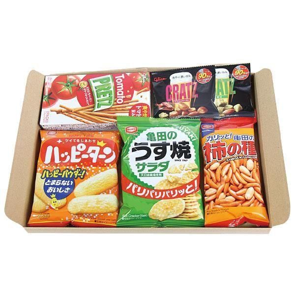 亀田の人気のお菓子やグリコの詰め合わせセットです。クラッツミニタイプの詰め合わせです。