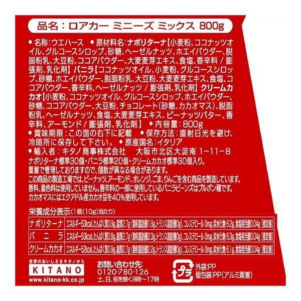 家族や友人の集まり、ホームパーティーなどの大人数が集まる場面から、オフィスでのコーヒータイムや友達へのおすそ分けなどの日常的な場面まで、幅広い分野で大活躍の商品。天然素材を大切にこだわったイタリアトップブランドのウエハース専門メーカー「ローカー」が作る<ミニーズ>。着色料・保存料・香料・水素添加油脂は一切含まれておりません。ウエハース4層とクリーム3層のおいしさをお楽しみください。ヘーゼルナッツクリーム・バニラクリーム・カカオクリームの3種類入り。個包装(10g)の80個入り。
