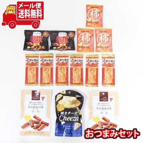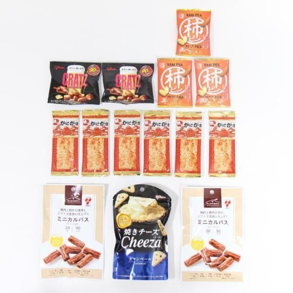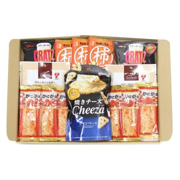 グリコのチーザやクラッツミニ、柿ピーなどおやつはもちろんおつまみにもおすすめなお菓子をセットにしました。