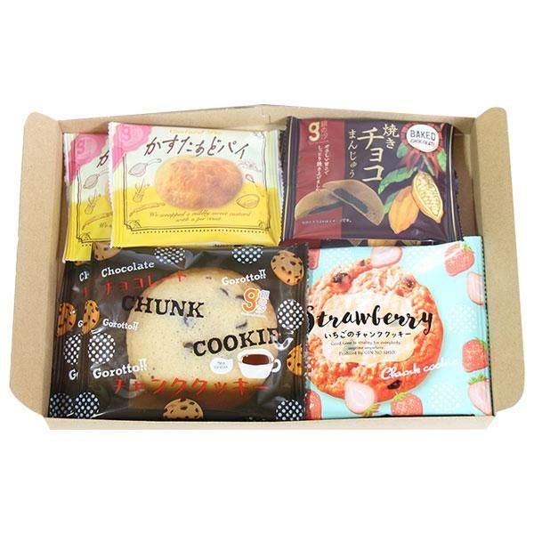 見た目がかわいいチャンククッキーと、やさしい甘さが特徴のかすたぁどパイ、焼きチョコまんじゅうのセットです。