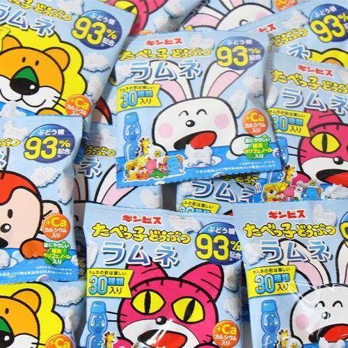 全部で30種類のラムネの形が楽しめます。ぶどう糖を93%配合。1袋9g入りの食べきりサイズで小分けにでき、持ち運びにも便利な形態です。