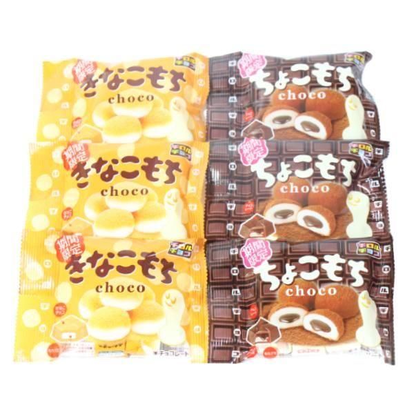 きなこチョコの中にもちグミを閉じ込めたチロルチョコきなこもちと、チョコレートの中にチョコソースともちグミを閉じ込めたちょこもちのセットです。